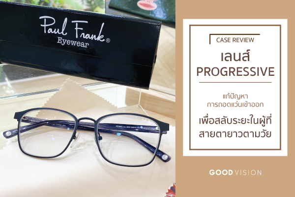 จากผลการตรวจวัดสายตาพบว่าลูกค้าท่านนี้มีสายตาสั้นและสายเอียงที่ระยะไกล และยังมีสายตายาวตามวัยที่ระยะใกล้ ทำให้เมื่อมองไกลต้องใส่แว่นสายตาสั้น แต่เมื่อมองใกล้ต้องถอดแว่นจึงจะมองเห็น