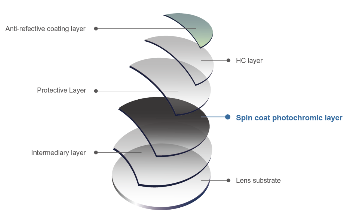 รูป 1.3 ผิวเคลือบเลนส์ปรับแสง Photochromic layer (Reference: www.universeoptical.com)