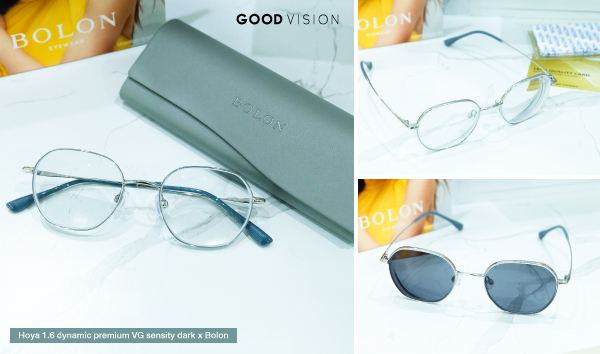 สำหรับเลนส์ที่จะสามารถแก้ปัญหาการมองเห็นให้ลูกค้าท่านนี้ได้อย่างครบถ้วน ทางร้านแนะนำให้ใช้เลนส์โปรเกสซีฟ Hoya จากประเทศญี่ปุ่น รุ่น Dynamic Premium 1.6 VG + sensity dark เลนส์โปรเกสซีฟย่อบาง เหมาะสำหรับผู้ที่สายตาสั้นค่อนข้างสูง เลนส์รุ่นนี้มีการออกแบบโครงสร้างเลนส์ที่ดีขึ้น ทำให้ผู้สวมใส่สามารถปรับโฟกัสการมองจากระยะไกล มาที่ระยะใกล้ได้อย่างนุ่มนวล สบายตา มาพร้อมกับผิวเคลือบเลนส์ VG ที่มีคุณสมบัติในการทนต่อรอยขีดข่วน และออกแดดเปลี่ยนสีแบบเข้มพิเศษ (Sensity dark) กรองแสงสีน้ำเงินได้ถึง 420 นาโนเมตร เหมาะกับผู้ที่แพ้แสงมากกว่าปกติ หรือต้องอยู่กลางแจ้ง และขับรถตอนกลางวัน