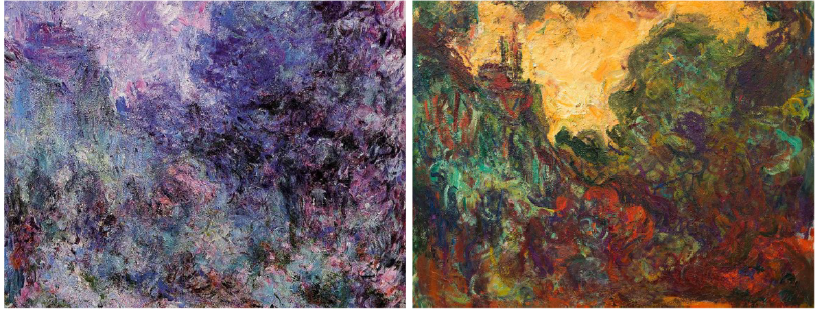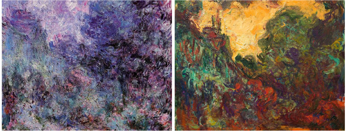 Right Image : Painted as cataracts became severe ; color tones are distorted from reality, brushstrokes are hazy, and edges are so blurred that details are almost invisible.